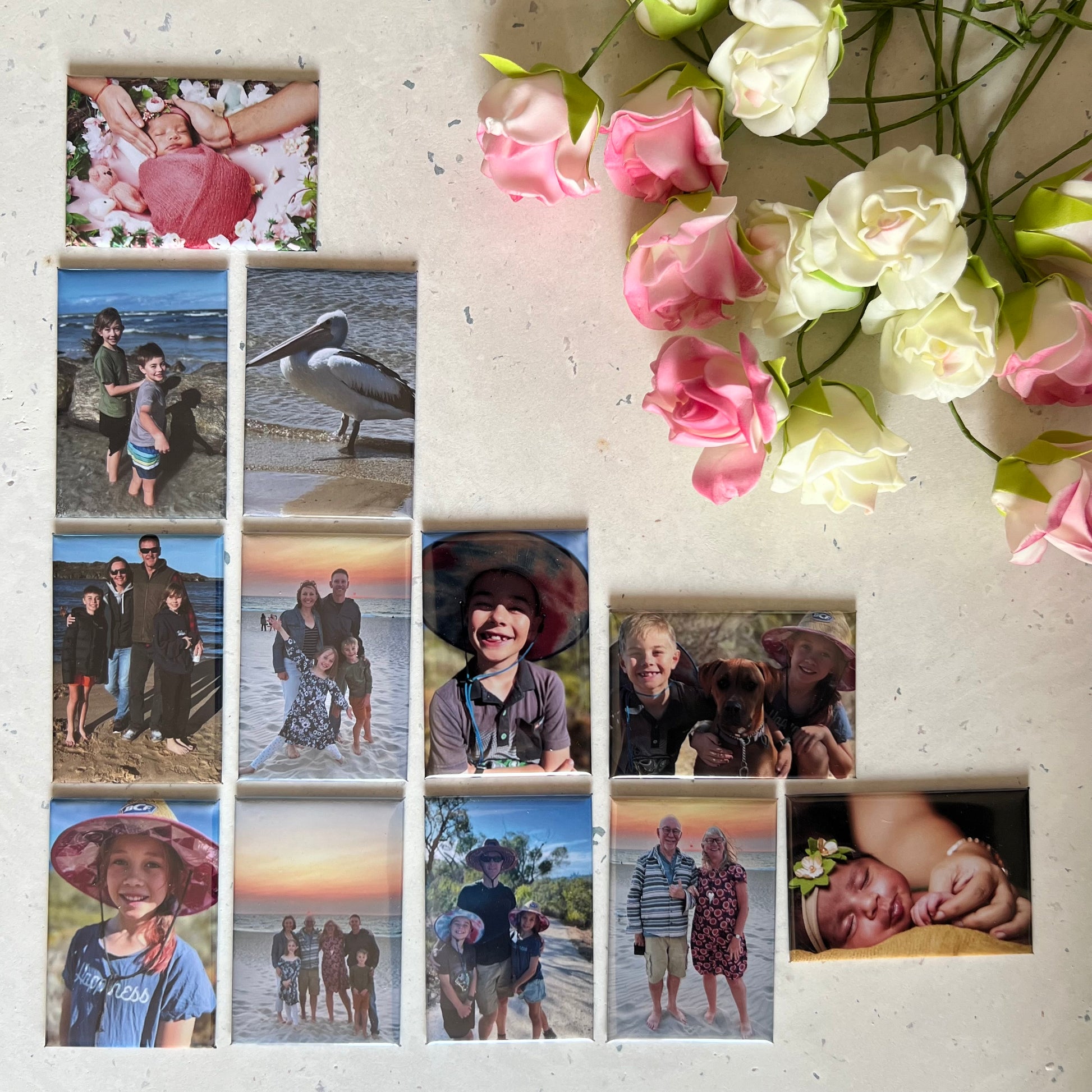 Our personalised magnets are printed on high-resolution photo paper with a glossy protective finish, delivering vibrant colour, sharp detail, and long-lasting shine. Each magnet is handmade and quality-checked in Australia, with a strong magnetic backing that securely holds multiple sheets on your fridge or board. Available in perfectly sized square and rectangle options, they’re easy to create—just upload your photo, crop, and personalise in minutes.